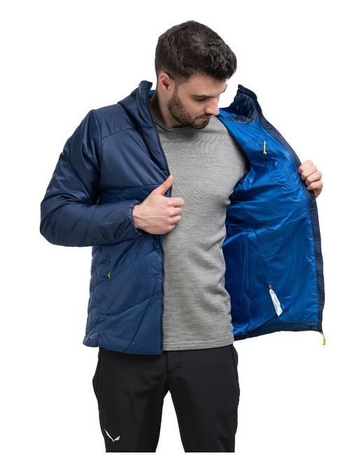 Built with 100% recycled fabrics and insulation, it’s fast-drying, breathable, and ideal for keeping you warm in damp conditions. 1 YKK® internal zipped pocket, doubles as integrated stuff sack. YKK® VISLON® front zip with insulated internal zip baffle and chin guard.