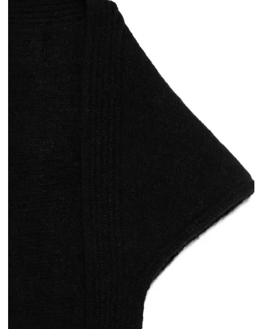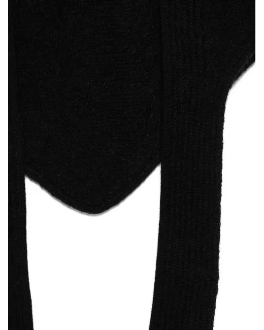 black alpaca wool blend triangular shape tied ends ribbed texture