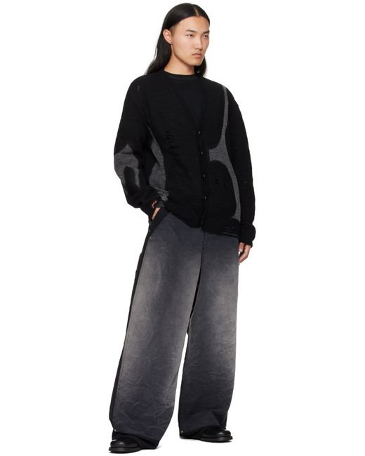Knit wool cardigan. · Floral-embroidered poplin panels throughout · Distressing and laddering throughout · Rib-knit V-neck, hem, and cuffs · Woven-leather button closure · Dropped shoulders Supplier color: Black