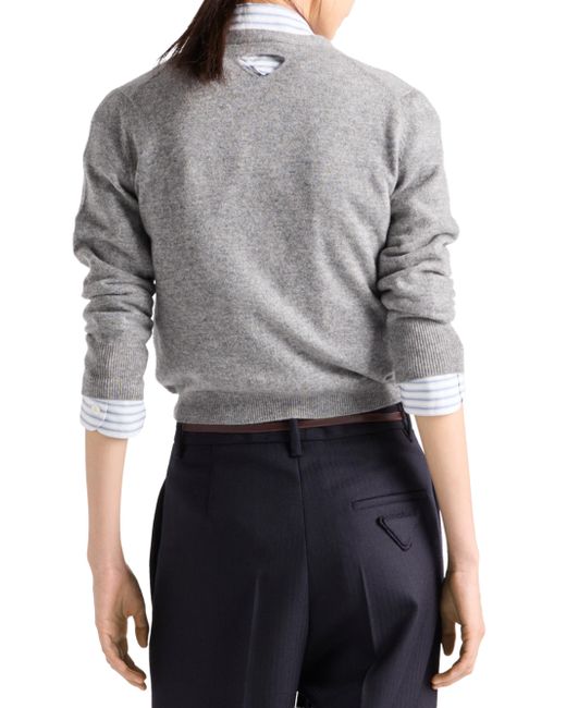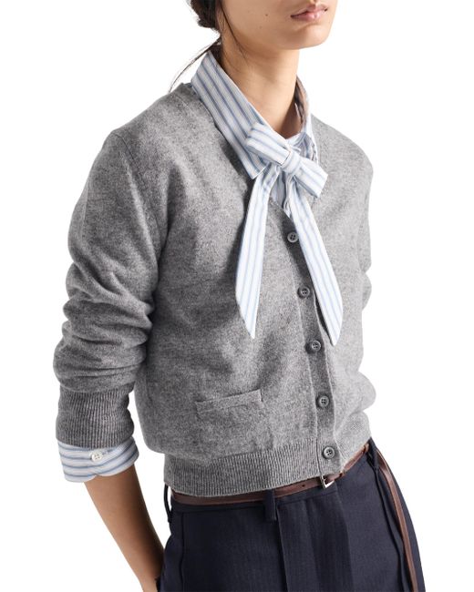 Three-quarter sleeves Plain knit Slim-fit silhouette V-neck Raglan shoulder Ribbed knit cuffs and hem Triangle logo Front button closure Front pockets Made in Italy 100% Cashmere - 100% Trochus Niloticus. Lsd Rtw - Prada Rtw > Prada > Saks Fifth Avenue. Prada. Color: Grey. Size: 2.