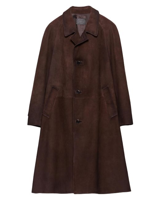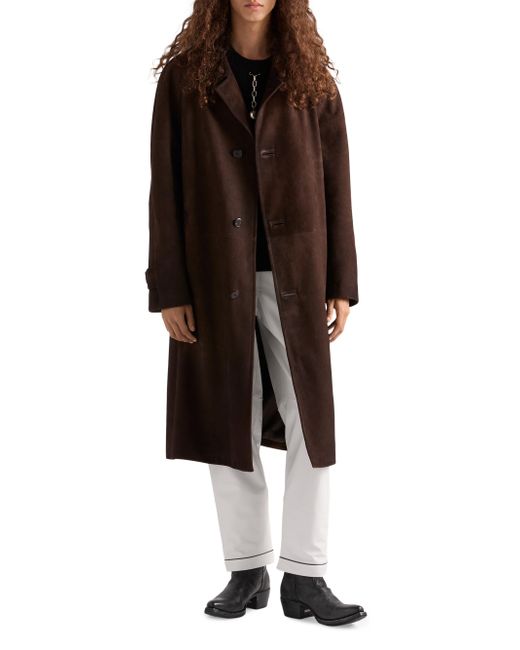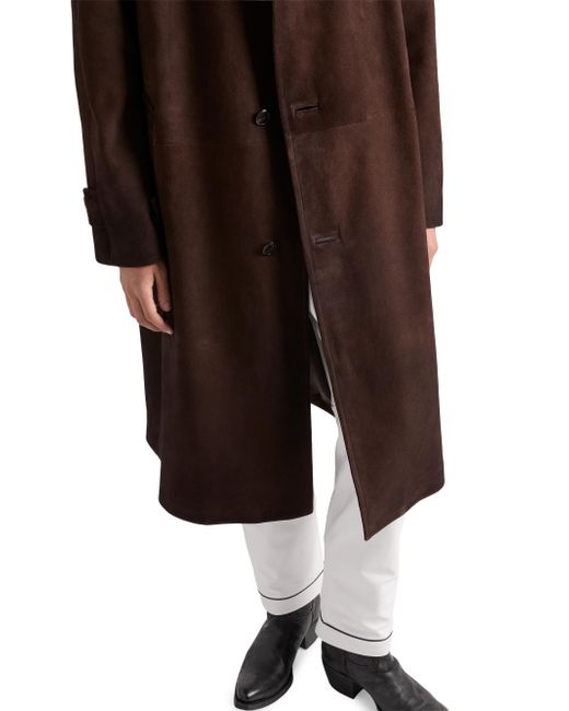 Lined garment Oversized fit Center button closure Notch lapel Raglan sleeve, cuff with strap and button Wide welt pockets Leather triangle logo on the back Final waxing treatment Imported 100% Lamb Leather. Lsd Rtw - Prada Rtw > Prada > Saks Fifth Avenue. Prada. Color: Brown. Size: 40.