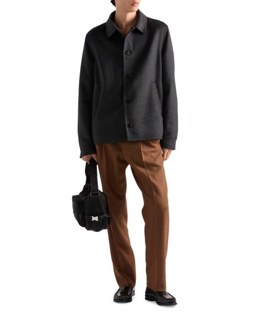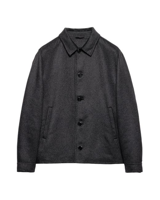 Regular fit Shirt-style collar Straight sleeve Button closure Welt pockets Cuff with button Regular shoulder Straight hem Unlined Double-knit fabric Fabric triangle logo and sartorial logo label Imported 100% Cashmere. Lsd Rtw - Prada Rtw > Prada > Saks Fifth Avenue. Prada. Color: Grey. Size: 40.