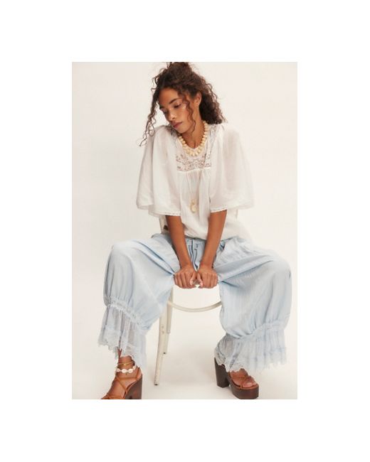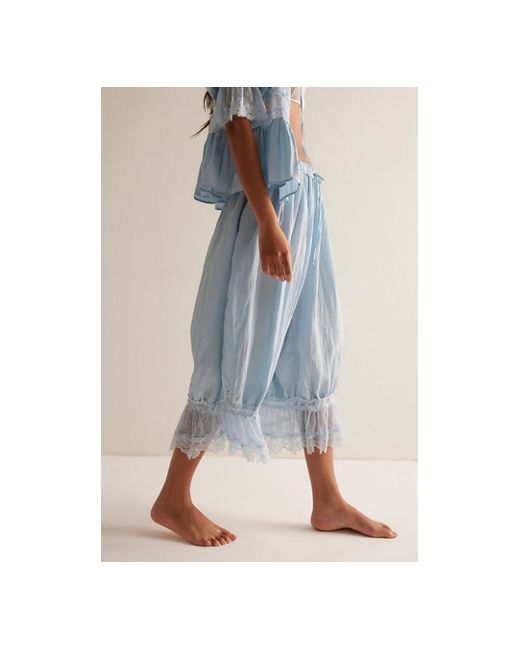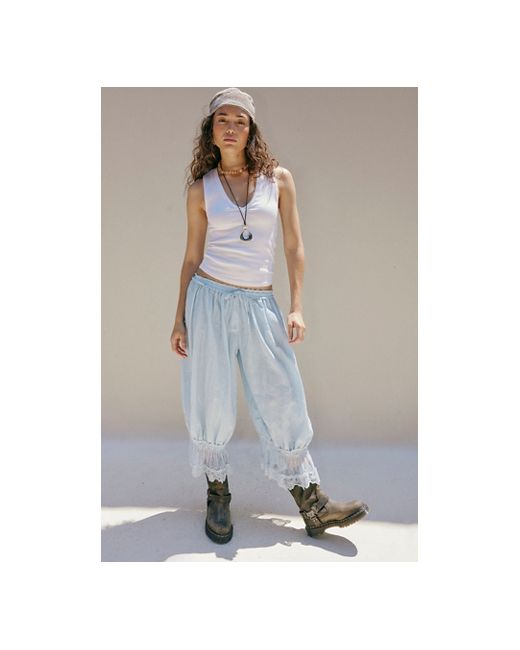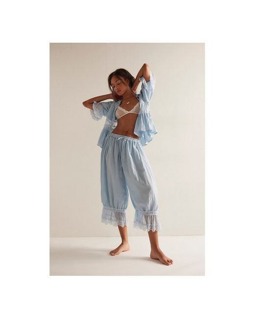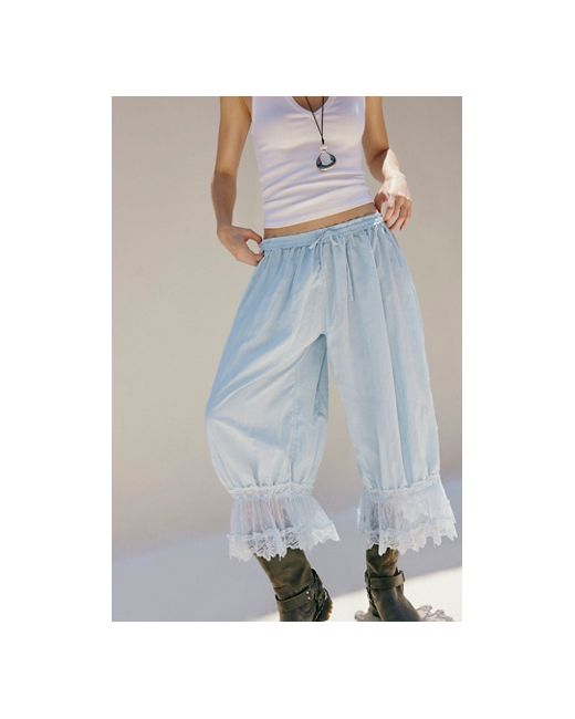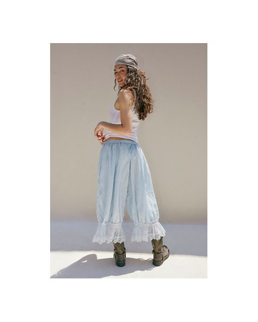 An elevated take on the classic bloomers, these pants feature a soft fabrication and mid-rise fit with feminine lace trim and functional tie-front detailing. **Fit:** Mid-rise fit, cropped legs **Features:** Soft fabrication with a lightweight feel, smocked elasticated waistband with functional tie, gathered legs with tapered hem, sheer lace trim **Why We ⤠It:** Essential for lounging around but also perfect for heading out, these bloomer-inspired bottoms were designed to do it all. Forever Young Bloomer Pants by Intimately at Free People in Skyride, Size: XS
