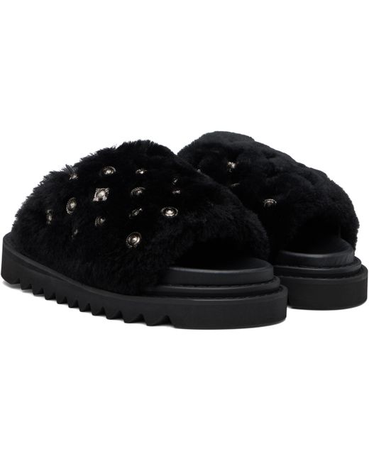 Shearling slip-on sandals. · Graphic hardware throughout · Open toe · Logo stamp at molded footbed · Buffed leather lining · Foam rubber midsole · Treaded rubber sole Supplier color: Black