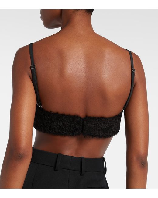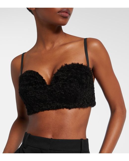 Materiale: 72% mohair, 28% poliammide. Trattamento: lavaggio a secco. Made in Italy. Colore del designer: Ivory Glow. Colore dell'articolo: nero. Spalline regolabili. Reggiseno imbottito. Chiusura: chiusura sul retro con gancetti. Stecche.
