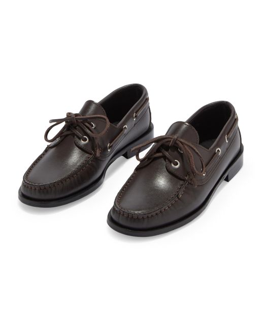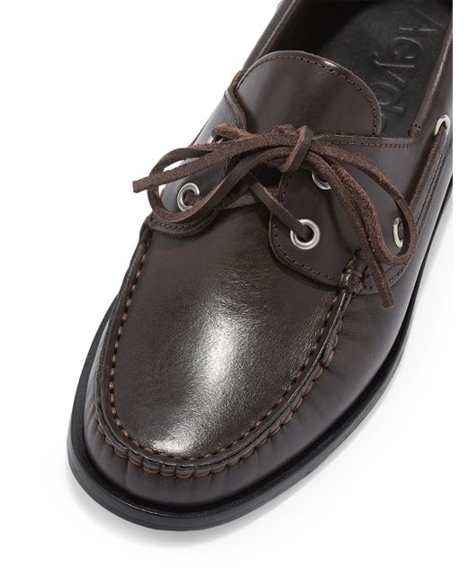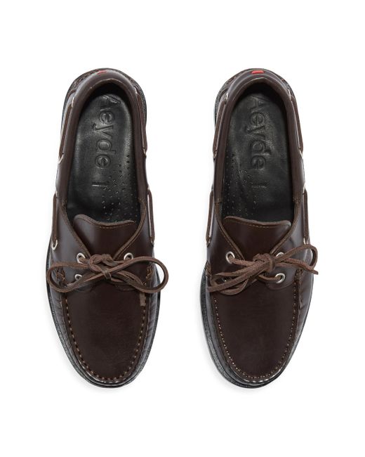 Made in Italy, these ayede boat shoes are crafted of leather and detailed with eyelets. Moc toe Lace-up style Leather upper Leather lining Leather sole Made in Italy. Women's Shoes - Workshop Shoes > Aeyde > Saks Fifth Avenue. aeyde. Color: Moka. Size: 11.