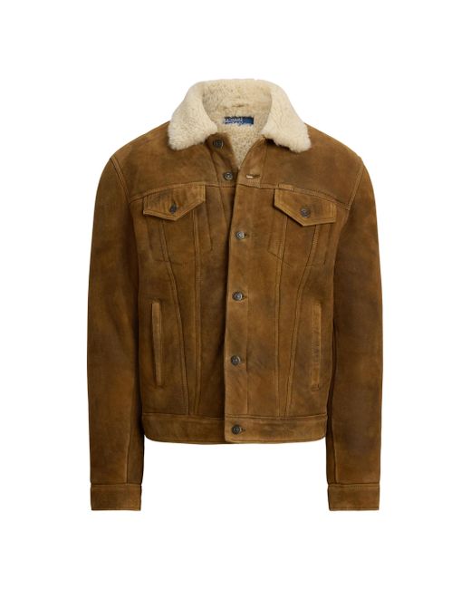 Crafted of merino shearling, this button-down jacket from Polo Ralph Lauren is styled with a spread collar and chest button-through patch pockets. Spread collar Long sleeves, button cuffs Chest button-through patch pockets Side slip pockets Button-front closure 100% lamb shearling Lining: 100% cotton Fur type: dyed lamb shearling Fur origin: Ireland Dry clean by leather specialist Imported SIZE & FIT Model measurements: 6'2" tall, 40" chest, 31" waist Model is wearing a US size Medium. Men Luxury Coll - Polo Blue Label > Polo Ralph Lauren > Saks Fifth Avenue. Polo Ralph Lauren. Color: Soft Brown. Size: Medium.