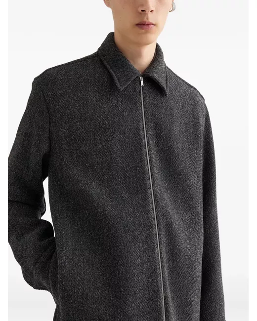 charcoal grey collar detail zip fastening two side pockets long sleeves