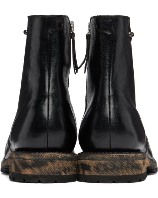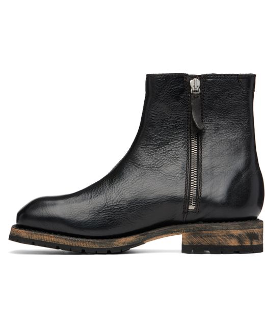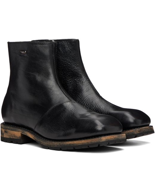 Ankle-high grained leather boots. · Square toe · Logo hardware at outer side · Zip closure at inner side · Topstitching at welt · Stacked Kilger leather heel and midsole · Treaded Vibram® rubber sole Supplier color: Deep black leather