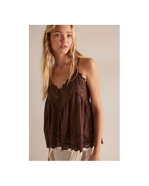 This cami from Intimately is featured in a lightweight cotton-blend fabrication with lace detailing for a touch of femme. **Fit:** Billowy, shapeless silhouette **Features:** Cotton-blend fabrication, subtle V-neckline, racerback adjustable straps, scalloped trim and detailing throughout **Why We ❤ It:** Layer with your favorite lacey bralette for a romantic look. Fiona Cami by Intimately at Free People in Chicory Coffee, Size: XS