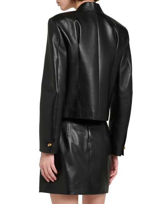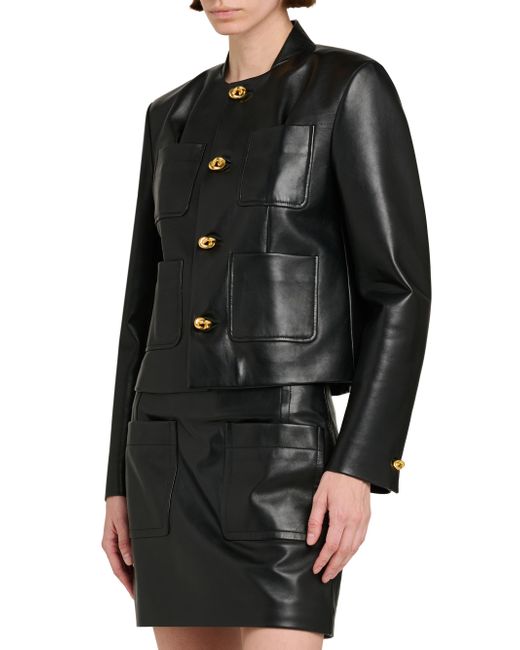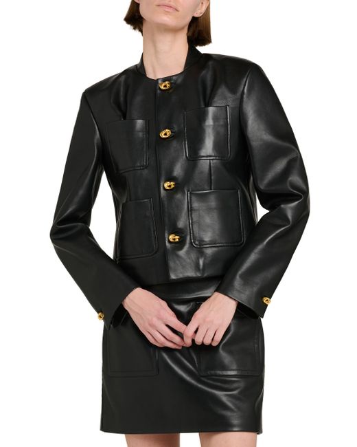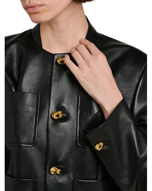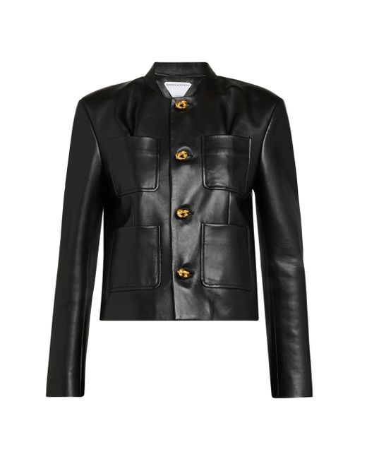 Made from midweight Italian leather, Bottega Veneta's classic jacket features patch pockets, a spread collar, and metal knot buttons. Spread collar Long sleeves, button cuffs Front patch pockets Button-front closure 100% leather Dry clean by leather professionalist Made in Italy SIZE & FIT Model measurements: 5'10" tall Model is wearing a US size 4 ABOUT THE BRAND Founded in 1966, the label known for fine Italian craftsmanship with creativity at its core has since catapulted to cult-level status. The house's storied intrecciato pattern in shoes and handbags, alongside its signature minimalist ready-to-wear, have made the label an editor and It-girl favorite. Advanced European - Bottega Veneta > Bottega Veneta > Saks Fifth Avenue. Bottega Veneta. Color: Black. Size: 0.