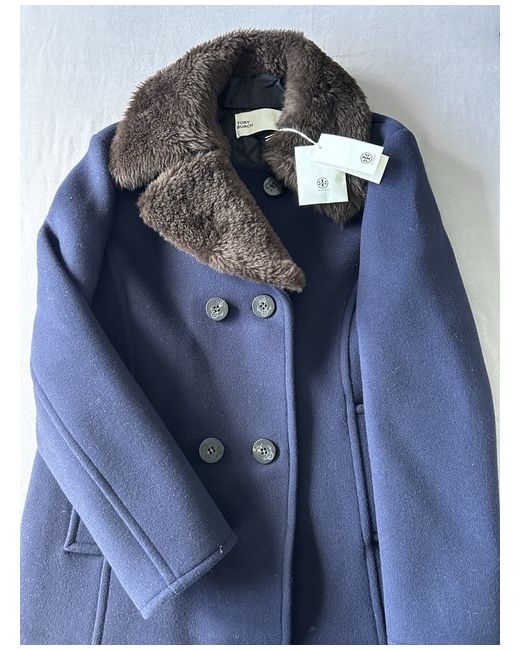 The Tory Burch Flannel Coat in size 6 is a stylish and formal winter garment for women. Made with wool flannel in a classic blue colour, this long sleeve coat features a button closure and a regular size fit. Perfect for the winter season, this pea coat from the renowned brand Tory Burch is a high-quality and fashionable addition to any woman's wardrobe. Dry clean only to maintain its appearance.