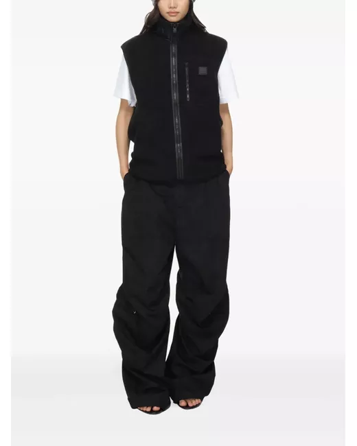nero trama effetto lana chiusura frontale con zip colletto rialzato senza maniche tasca con zip sul petto orlo posteriore curvo