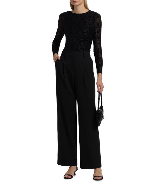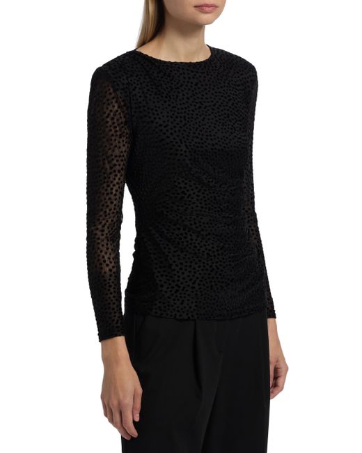 This Larry long-sleeve top from Ramy Brook, crafted of a stretch fabric, is cut in a body-con silhouette and adorned with a tonal polka-dot pattern. Round neck Long sleeves Back keyhole cut out Back hook-and-eye closure 95% polyester/5% spandex Lining: 100% polyester Machine wash Imported SIZE & FIT About 25" from shoulder to hem Model measurements: 5'10" tall Model is wearing a US size Small. Contemporary Sportswear - Contemporary Collections > Ramy Brook > Saks Fifth Avenue. Ramy Brook. Color: Black Dot. Size: XS.