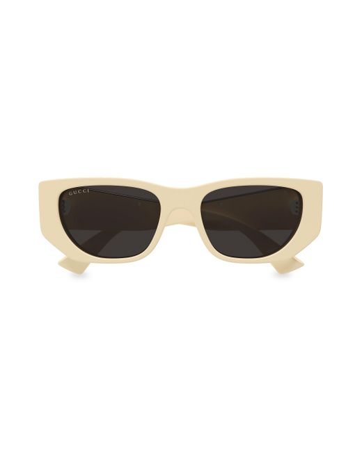 From the Subtle Web Collection. These Gucci geometric sunglasses are designed with enameled web stripes and a logo at the temples. Made with recycled acetate 100% UV protection Solid lenses Includes case and cleaning cloth Recycled acetate, exclusive of trim Made in Italy SIZE 53mm lens width 18mm bridge width 140mm temple length Please note: Lens replacement is optional. Soft Accessories - Sunglasses > Gucci > Saks Fifth Avenue. Gucci. Color: Ivory.