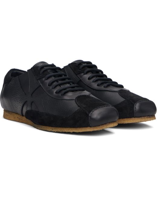 Low-top suede and grained leather sneakers. · Square toe · Lace-up closure · Padded collar · Graphic cutouts at sides · Buffed leather lining · Crêpe-rubber sole Supplier color: Black/Black