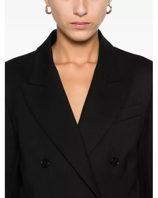 black double-breasted closure peak lapels long sleeves welt pockets