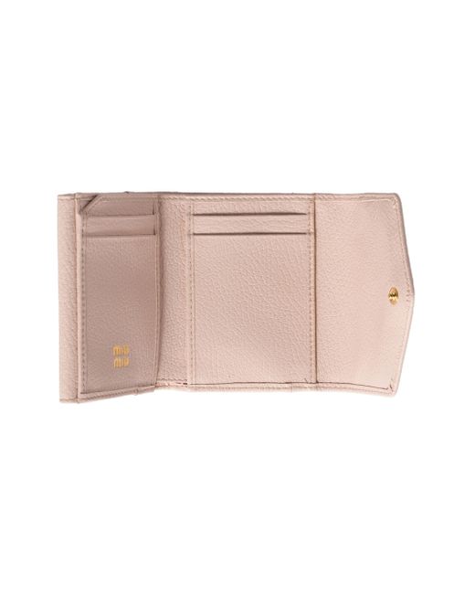 Snap closure Metal lettering logo One bill compartment Four card slots Two internal pockets Internal coin pocket with flap One external pocket Moiré lining Imported 100% Calf Leather 3.9 W x 3.3 H in. Lsd Handbags - Miu Miu > Miu Miu > Saks Fifth Avenue. Miu Miu. Color: Pink.