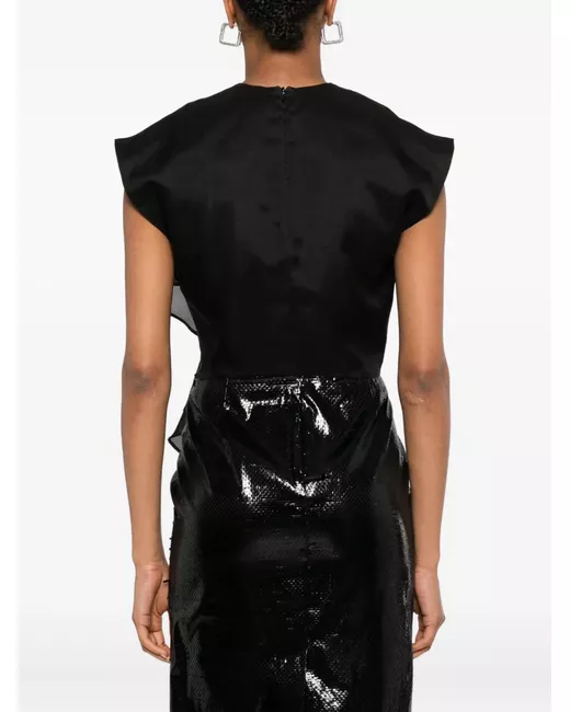 black silk asymmetrical ruffle detail crew neck sleeveless