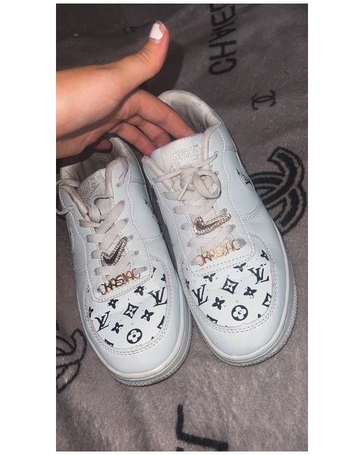 Custom trainers had the customised to what they are now they cost me £200 to get done with the dimond Nike tick I am taking offers on this trainers there a size 6 They don’t have a box and they are worn also at the bottom underneath shoe is little dirty but can be cleaned and like brand new 😁👌