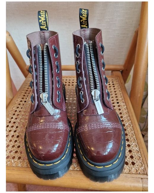 Sinclair Dr Martens size 5 maeoon croc platform boots with removeable with zip insert. Patent leather