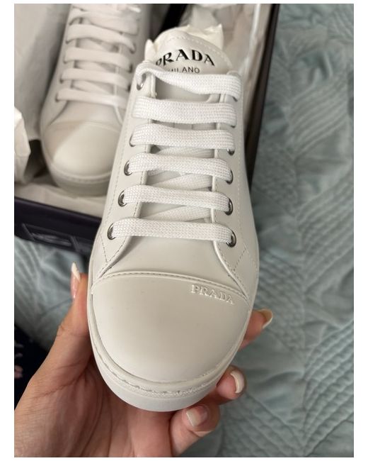 Prada White Leather sneakers in size 3.5 (36.5) never worn before in brand new perfect condition. Comes with the box and RFID label. Please be aware size comes out slightly big so would fit 37 also