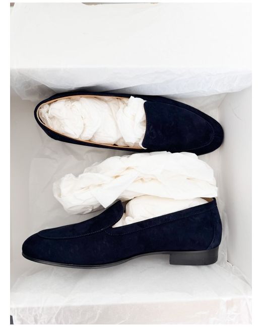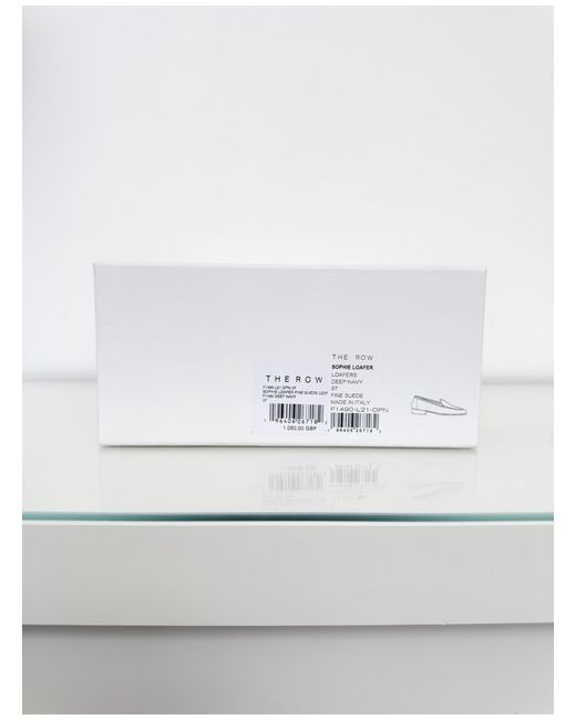 The Row Sophie suede upper stacked heel loafers in Deep Navy. Features a suede upper, leather insole and sole. Beautifully elegant almond toe, minimal and classic.