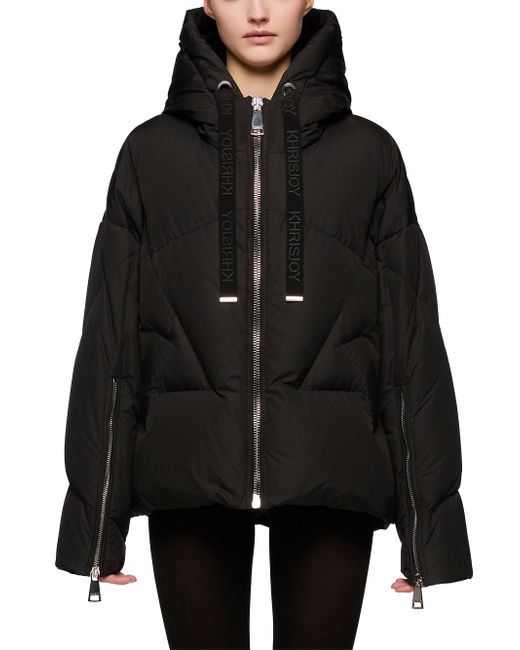 KhrisJoy's Crop Iconic Milano down jacket highlights a water-resistant nylon with a shiny finish. This piece features extended zip cuffs and a drawstring hood. Drawstring hood Long sleeves, zip cuffs Front zip closure 100% polyamide Lining: 100% polyester Fill: 90% down/10% feathers Hand wash Imported SIZE & FIT About 21" from shoulder to hem Model measurements: 5'10" tall Model is wearing a US size 4. Outerwear And Swimwear - Down > Khrisjoy > Saks Fifth Avenue. KhrisJoy. Color: Black. Size: 6.