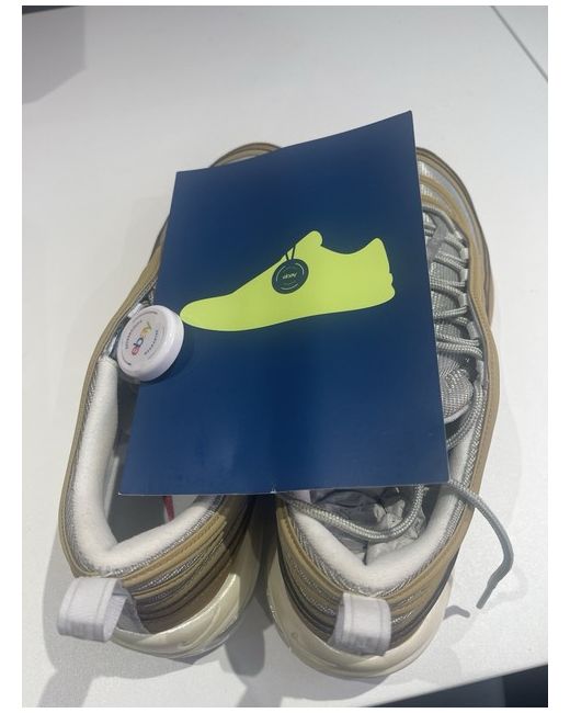 These are Nike Air Max 97 SSL trainers in size 12 for men. The style of these sneakers is metallic gold with the Nike Air branding. Never worn bought through eBay hence the eBay guarantee tag still attached . Box a little squashed due to stacking but original box see photos .