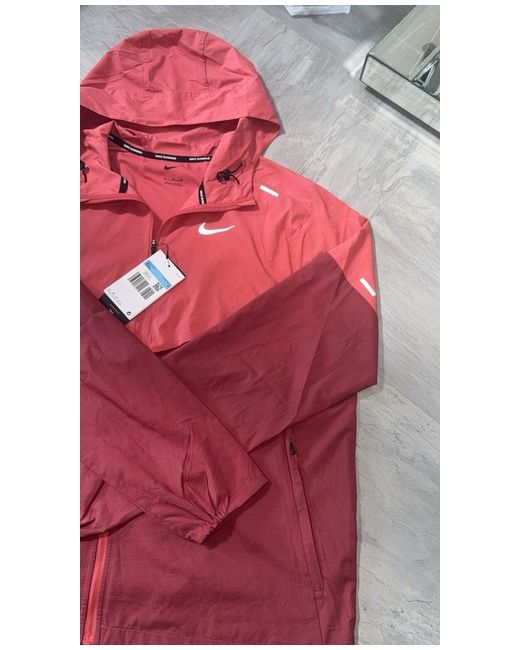 Stay stylish and comfortable during your runs with the Nike Repel Miler Adobe Men's Running Jacket. Made from polyester with a polyester insulation material, this long-sleeve windbreaker is perfect for spring days. Featuring a zip closure and machine washable design, this red jacket is part of the Nike Windrunner product line, designed specifically for running and jogging activities. With its sporty theme and regular size M fit, this jacket is a must-have for any avid runner looking to stay warm and dry during their workouts.