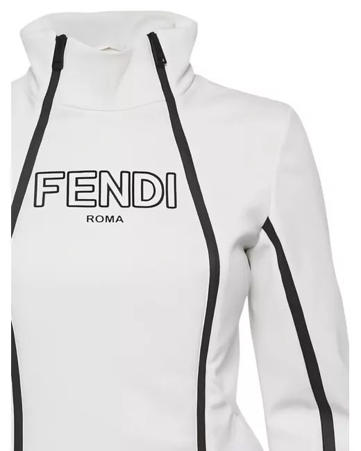 white jersey black panel detailing sleeves black logo embroidery front zip front closure fitted silhouette Condition: GOOD. This previously owned and used item is in good condition with minimal signs of use. This may include fading of material or plating and scratches.