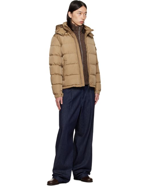 Down-filled quilted nylon satin jacket. · DIST-certified down and feathers · Bungee-style drawstring at detachable hood · Funnel neck · Two-way zip closure · Zip pockets at waist · Bungee-style drawstring at hem · Flap pocket with embroidered logo at sleeve · Adjustable press-stud tab at elasticized cuffs · Zip pocket at interior · Fully lined Supplier color: Dijon Fill: 90% down, 10% feather.