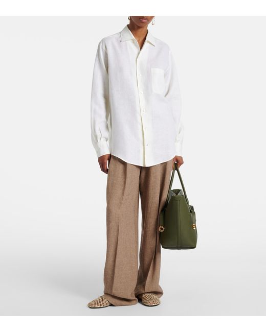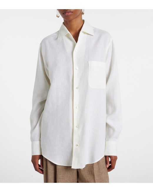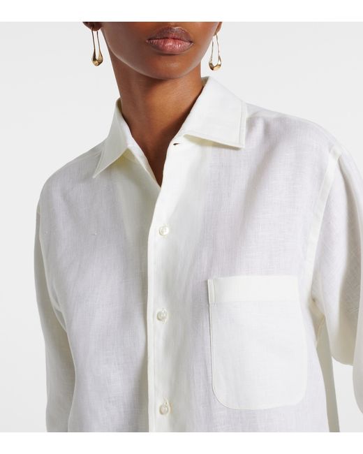 Materiale: 100% lino. Trattamento: lavaggio in lavatrice a 30°. Made in Italy. Colore del designer: Vanilla. Colore dell'articolo: bianco. Lino. Collo: classico (a punta). Chiusura: abbottonatura frontale. Tasche: tasca sul petto arrotondata.