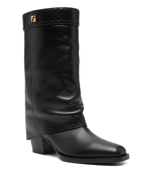 black logo appliqué block heel square toe branded insole slip-on style rubber sole