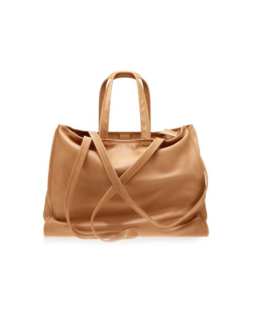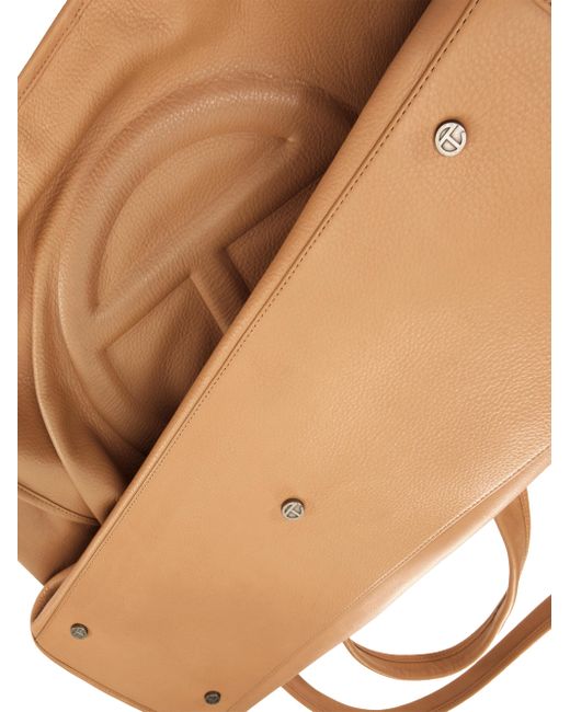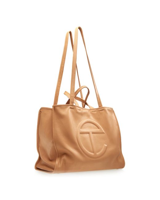 Crafted of leather, this large Carry bag from TELFAR features a sleek design with dual shoulder and crossbody straps. The style is finished with an embossed logo. Made with responsibilty tanned leather Two shoulder straps Two crossbody straps Exterior: one zip pocket Protective metal feet Snap closure Responsibly tanned leather, exclusive of trim leather Imported SIZE About 20"W x 16"H x 8.75"D Two shoulder straps: about 9.5" drop Two crossbody straps: about 21" drop. Men Accessories - Contemporary Accessories > Telfar > Saks Fifth Avenue. TELFAR. Color: Desert.