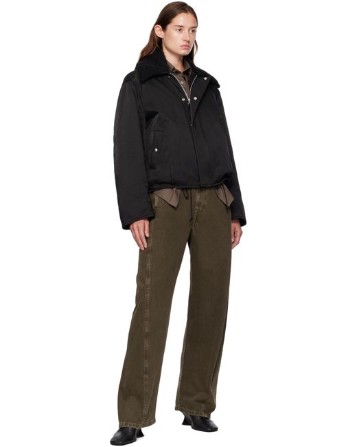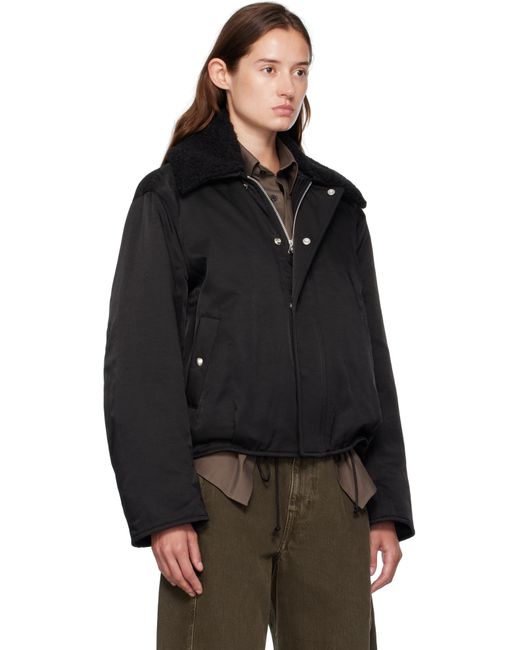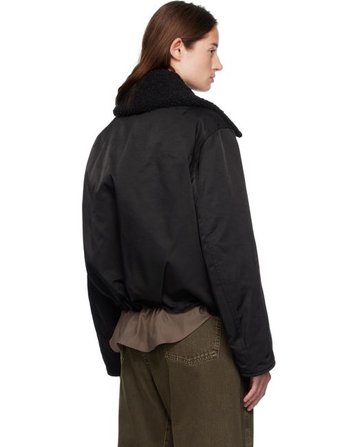 Insulated cotton- and nylon-blend twill bomber jacket. · Water-repellent · Detachable sherpa fleece trim at spread collar · Zip closure with press-stud placket · Welt pockets at front · Drawstring at cropped hem · Inset elasticized cuffs · Full quilted satin lining Supplier color: Black aero nylon