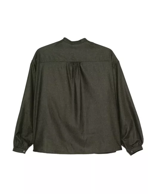 dark green chest pocket button fastening long sleeves band collar gathered detailing