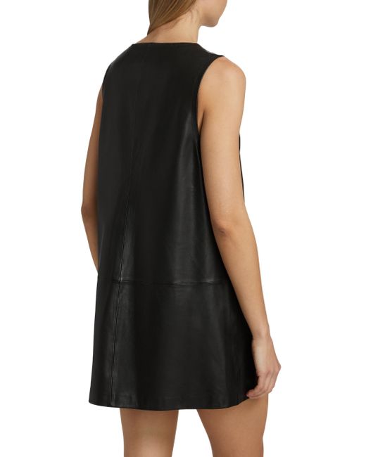 This sleeveless pinafore minidress from Frame, crafted of smooth leather, features a plunging V-neck and flap patch pockets with goldtone buttons. V-Neck Sleeveless Side button-through flap patch pockets Back zip closure 100% leather Dry clean Imported SIZE & FIT About 33" from shoulder to hem Model measurements: 5'10" tall Model is wearing a US size small ABOUT THE BRAND In 2012, Erik Torstensson and Jens Grede combined their California-modern point of view with a European sensibility to establish Frame. The ready-to-wear label, first known for its denim, has expanded to leather, cashmere and tailoring-all with an effortless ethos at the core. Focusing on quality fabrics and foundational dressing, the brand delivers chic everyday staples favored by Hollywood starlets and beyond. Contemporary Sportswear - Denim And Bottoms > Frame > Saks Fifth Avenue. Frame. Color: Black. Size: XS.
