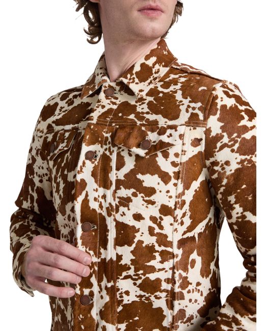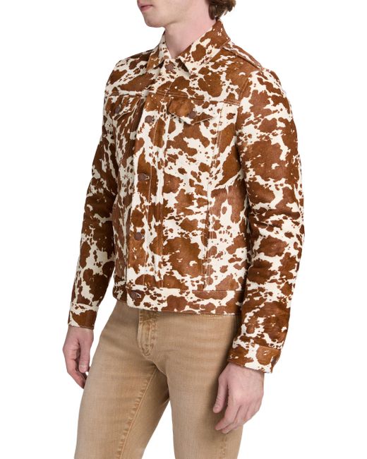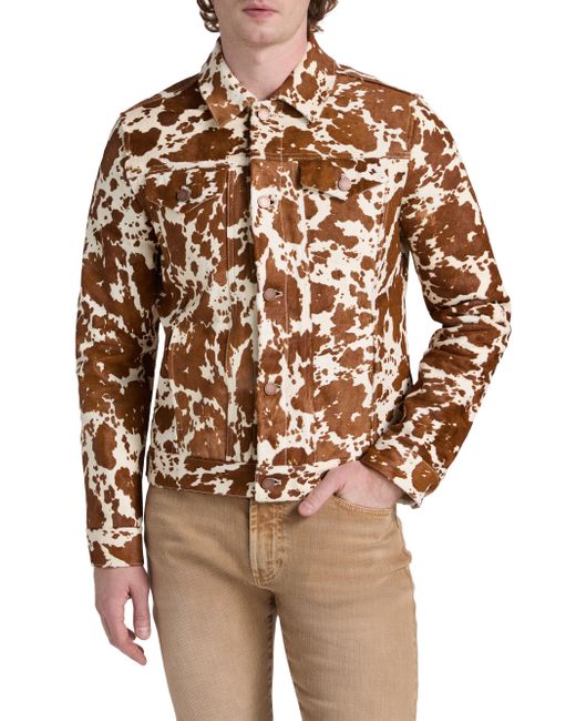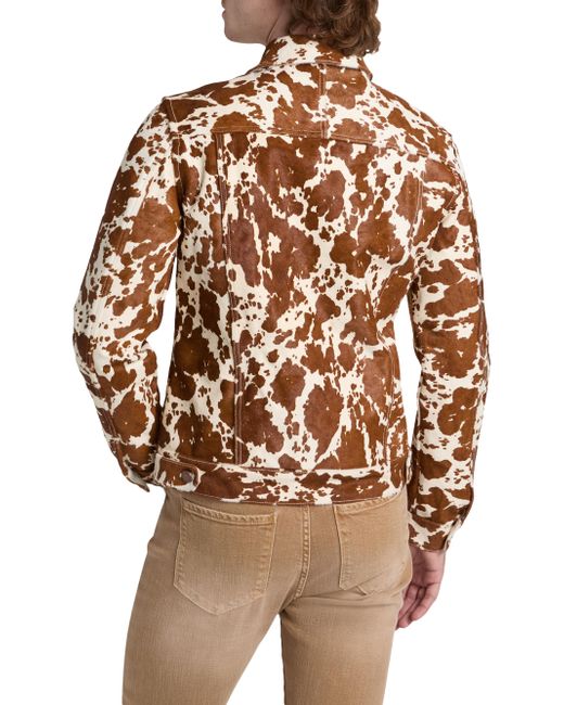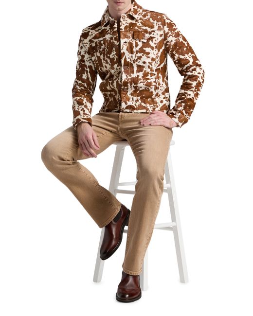 This Dean jacket from Monfrère is crafted of cowhide printed leather. Cut for a slim fit, it features a spread collar, chest button-through flap-patch pockets, and a button-front closure. Shirt collar Long sleeves, barrel cuffs Chest button-through flap-patch pockets Side seam pockets Button-front closure Leather Lining: 100% polyester Dry clean Imported SIZE & FIT Slim fit About 26.5" from shoulder to hem Model measurements: 6'2" tall, 40" chest, 31" waist Model is wearing a US size Medium. Mens Denim & Contemp - Contemp Denim And Bottom > Monfrère > Saks Fifth Avenue. Monfrère. Color: Cowhide. Size: Small.