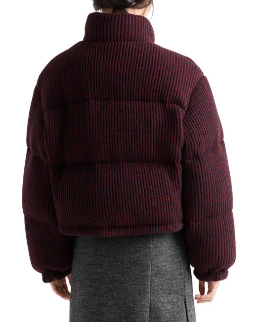 Regular fit Goose down padding Stand-up collar Long sleeves Elasticized cuff Zipper closure Welt pocket Elasticized drawstring hem Enameled metal triangle logo Logo on the front Imported 30% cashmere, 70% fleece wool. Lsd Rtw - Prada Rtw > Prada > Saks Fifth Avenue. Prada. Color: Brown. Size: 6.