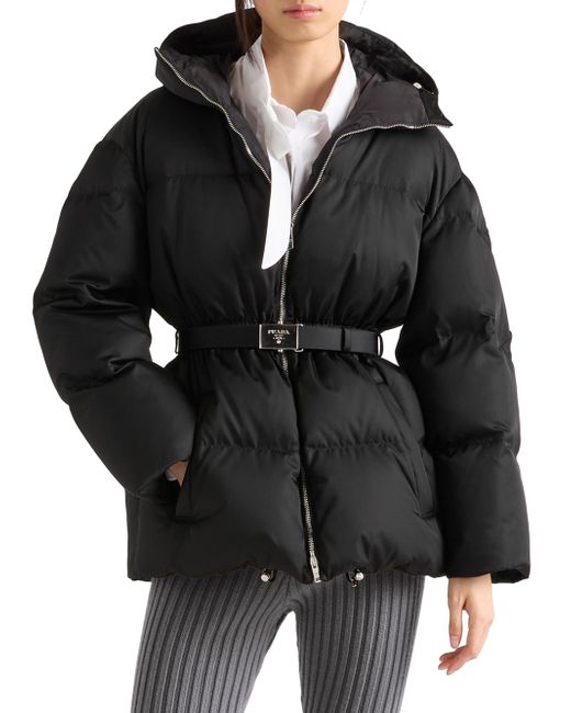 Relaxed fit The garment fits up to one size larger Goose down padding Hood Long sleeves Zipper closure Welt zipper pockets Elasticized drawstring on the hem and hood Elasticized waist Fabric belt with plaque buckle Imported 100% Recycled Polyamide. Lsd Rtw - Prada Rtw > Prada > Saks Fifth Avenue. Prada. Color: Black. Size: 6.