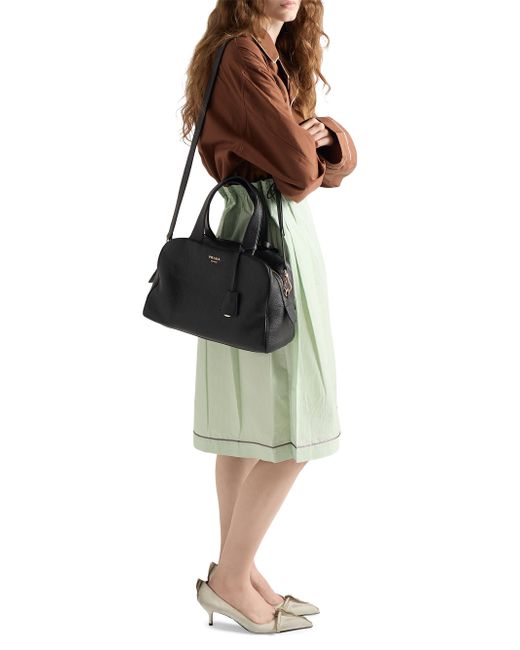 Leather handles Detachable, adjustable deerskin shoulder strap. Maximum length 114 cm - Minimum length: 104 cm - Maximum drop 53 cm - Minimum drop 48 cm Removable key ring Metal hardware Embossed lettering logo on the front Zipper closure Logo-print nylon lining with two pockets, including one with zipper Imported 100% Cervus Elaphus Scot 33W x 22H x 14L cm / 12.9W x 8.6H x 5.5L in. Lsd Handbags - Prada Handbags Access > Prada > Saks Fifth Avenue. Prada. Color: Black.