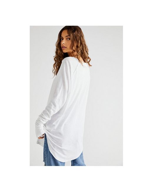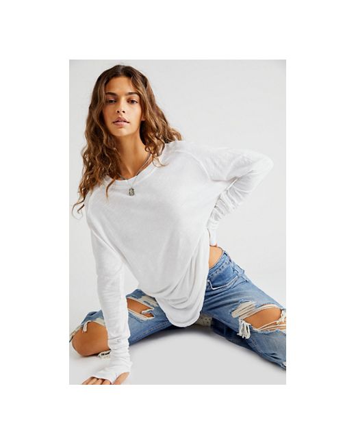 Easy and classic, this lightweight long sleeve tee will be your new go-to. * Slouchy oversized tee * Unfinished trim * Thumb holes on the cuffs * Rounded hem **Note:** Color Code 004 (Heather Grey) Contents- 90% Cotton, 10% Polyester We The Free Arden Tee at Free People in Optic White, Size: XS