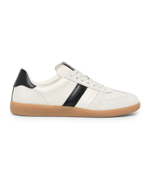 These low-top sneakers from Tom Ford highlight a suede and leather design on a rubber sole. Engraved logos detail the tongue and quarters of this pair, while a metallic T-bar logo graces the heel. Round toe Lace-up style Leather upper Textile/ leather lining Rubber sole Made in Italy ABOUT THE BRAND After 10 years of serving as the Creative Director for several international luxury fashion houses, Tom Ford launched his own line of optical frames, sunglasses and grooming in 2005. The following year he debuted menswear, and in 2010, women's ready-to-wear. His sleek, tailored aesthetic has since catapulted him to mega-brand status. Men's Shoes - Mens Classic Footwear > Tom Ford > Saks Fifth Avenue. TOM FORD. Color: White Black Amber. Size: 8.
