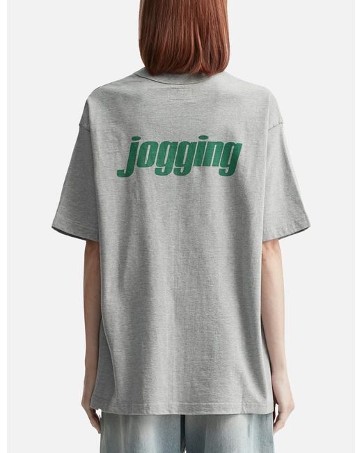 UnlikelyUnlikely Authentic Graphic Tee "jogging"Loose fitMade of tightly woven, sturdy jersey fabricExtra-wide binder neckline made with custom binding-sewing equipmentShort sleeve"Jogging" print on chest and backColor: Gray