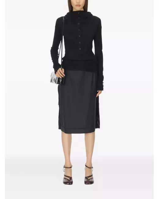 black button fastening slouchy hood long sleeves