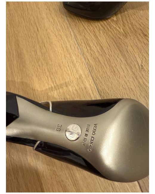 ⢠Brand: Dolce & Gabbana ⢠Model code: CO8442 ⢠Style: Slingback stiletto heel ⢠Material: Black patent leather with metallic silver leather lining ⢠Heel type: Slim stiletto heel ⢠Toe shape: Rounded almond toe ⢠Fastening: Adjustable slingback strap with buckle ⢠Size: EU 38 (UK 5) ⢠Packaging: Comes with original Dolce & Gabbana box