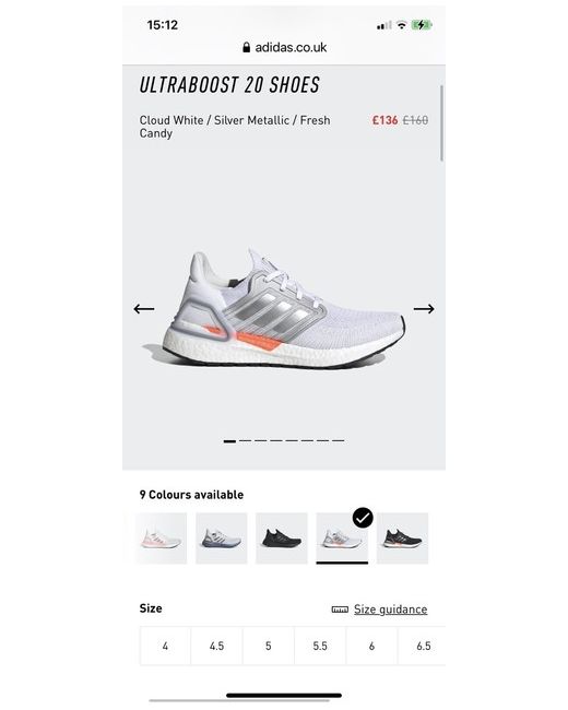 Ultra Boost 20 W Trainers White Grey Orange Fx 7992 Uk 7 1/2