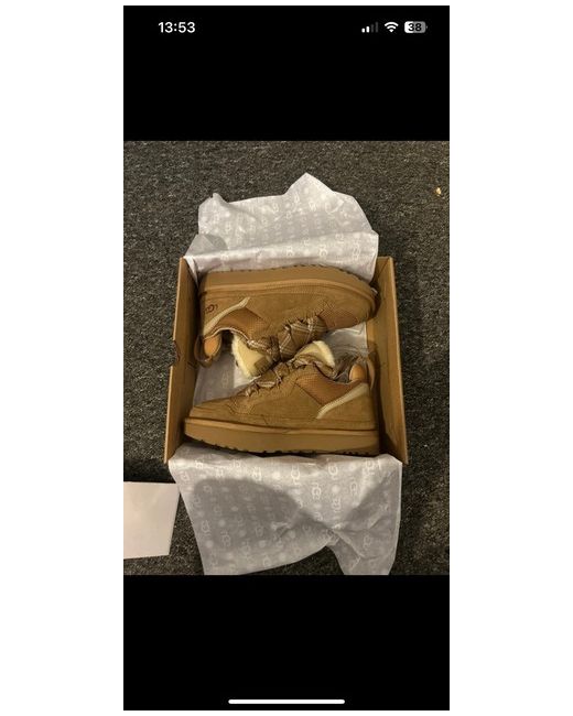 This UGG Lowmel Chestnut trainer is a women's shoe in UK size 5, featuring a low top design with a lace-up closure. Crafted from brown suede, it offers a standard shoe width and is part of the UGG Classic product line. Ideal for the winter season, these boots combine style and comfort for everyday wear. The UGG brand is known for its quality and this model, released between 2010-Now, is a classic choice for those seeking a versatile and fashionable sneaker option.