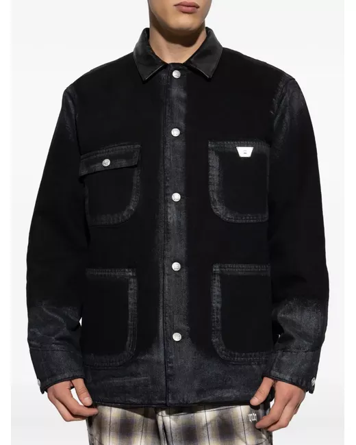 washed black button fastening front pockets plaque detail